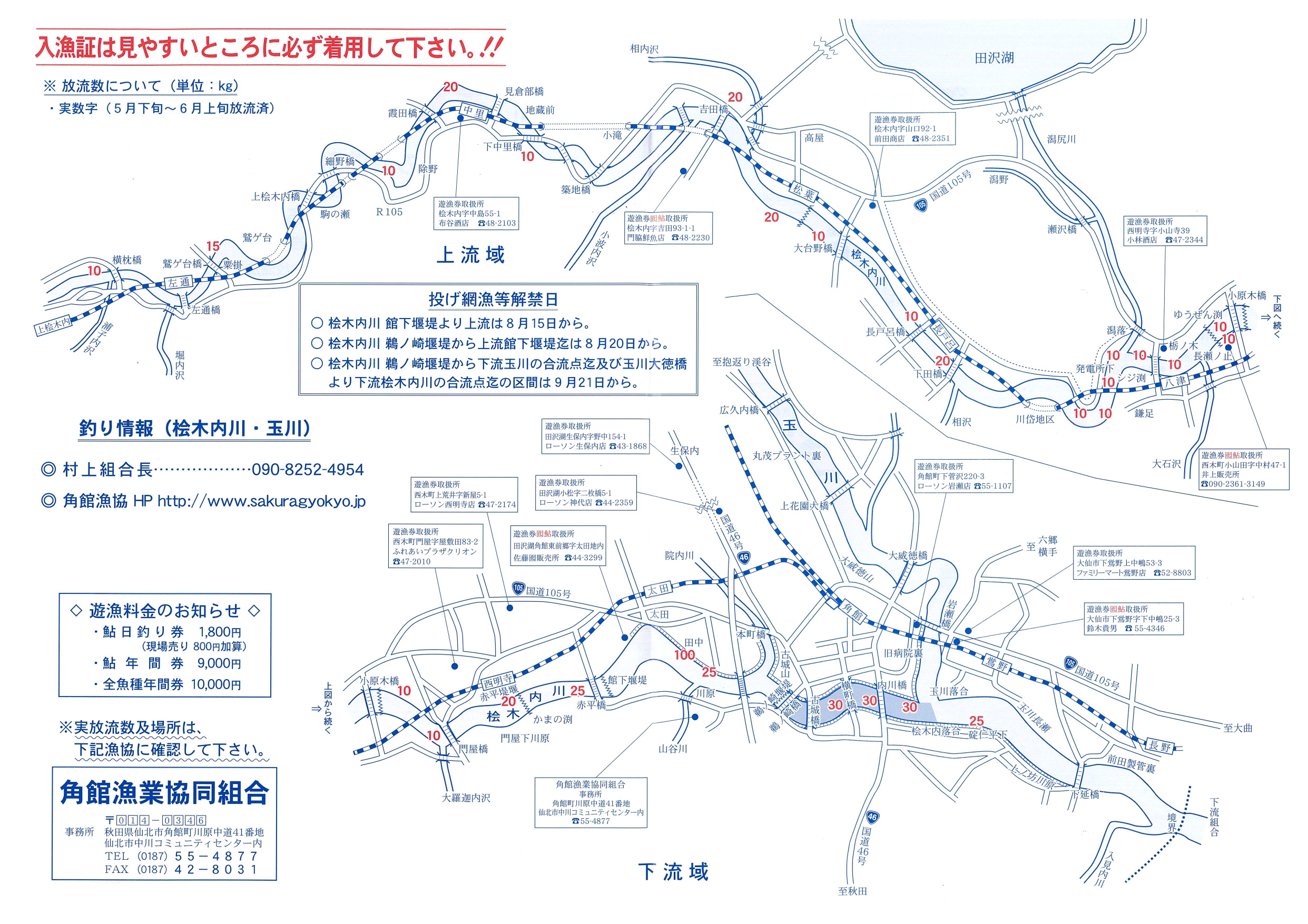 漁場区域、各地点の放流数、遊漁料等をご覧いただけます。